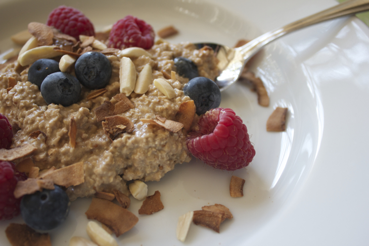 Top a serving of raw oatmeal with a sprinkling of a few other nutritional powerhouses such as almonds, ground flax seeds, fresh berries, or unsweetened coconut and you have a truly perfect breakfast that will sustain you for hours.